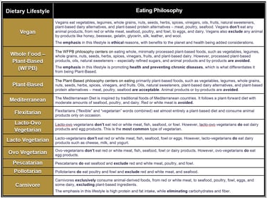 These are among the most common dietary lifestyles and eating philosophies, though many people adapt them in their own way.