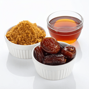 Natural sweeteners consist of sugar from sugar cane and beets (which also produces molasses, brown sugar, and powdered sugar), date sugar from date trees, maple syrup from maple trees, agave syrup from the agave plant, and corn syrup from corn. However, sugar has a low nutritional value and should be eaten in moderation.